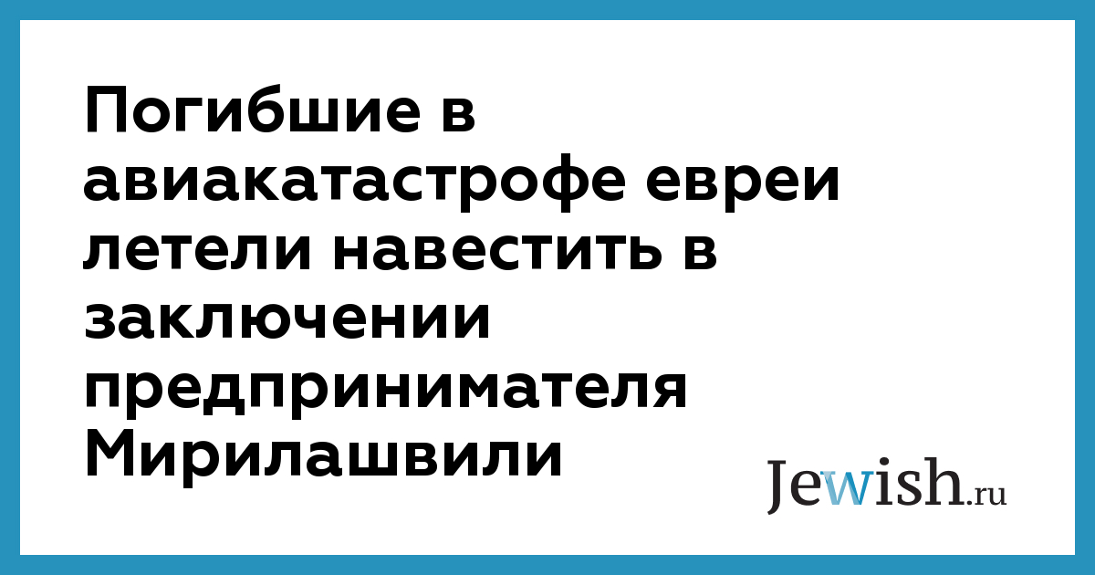 Погибшие в авиакатастрофе евреи летели навестить в заключении предпринимателя Мирилашвили