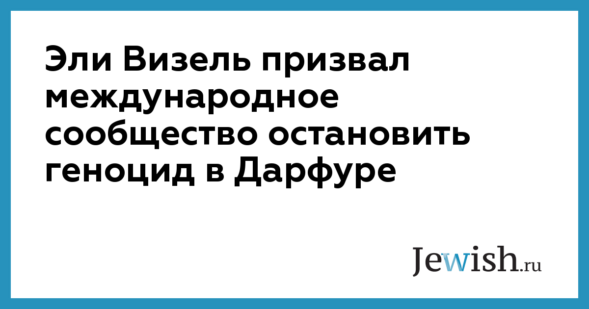 Эли Визель призвал международное сообщество остановить геноцид в Дарфуре