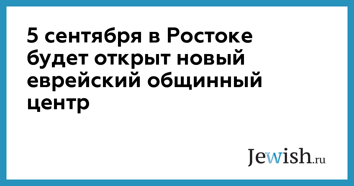 5 сентября в Ростоке будет открыт новый еврейский общинный центр