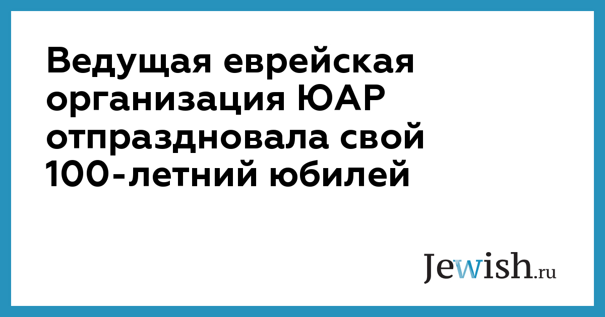 Ведущая еврейская организация ЮАР отпраздновала свой 100-летний юбилей