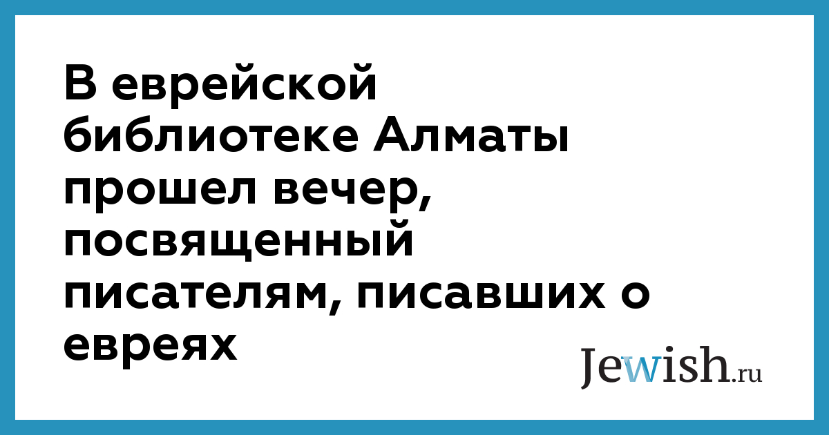 В еврейской библиотеке Алматы прошел вечер, посвященный писателям, писавших о евреях
