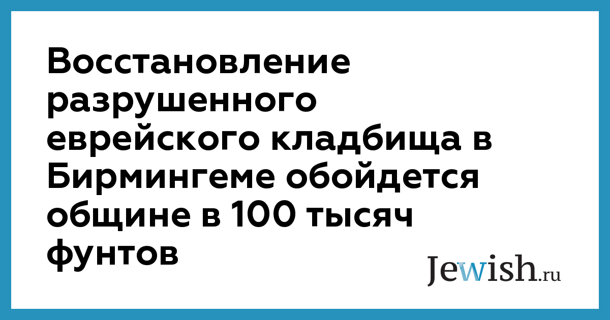 Восстановление разрушенного еврейского кладбища в Бирмингеме обойдется общине в 100 тысяч фунтов