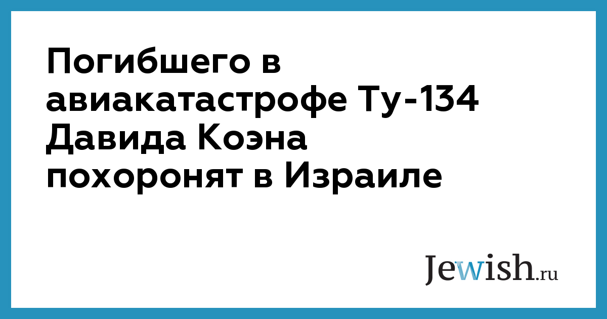 Погибшего в авиакатастрофе Ту-134 Давида Коэна похоронят в Израиле