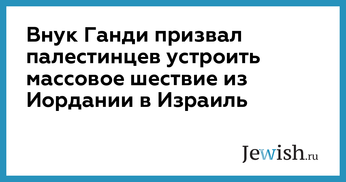 Внук Ганди призвал палестинцев устроить массовое шествие из Иордании в Израиль
