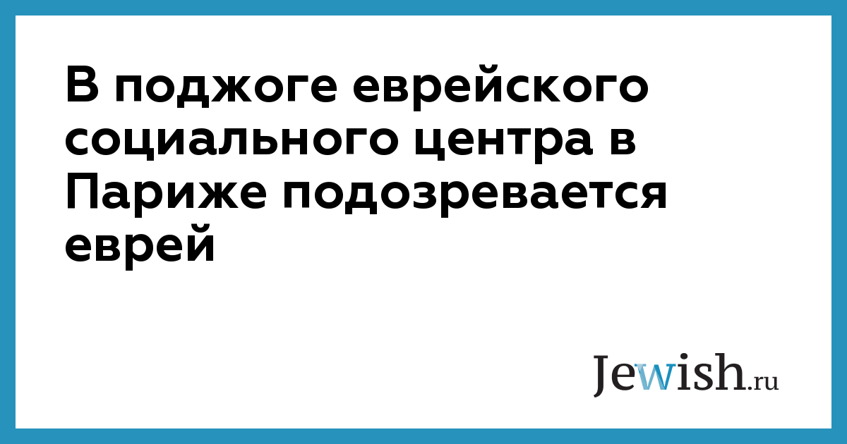 В поджоге еврейского социального центра в Париже подозревается еврей