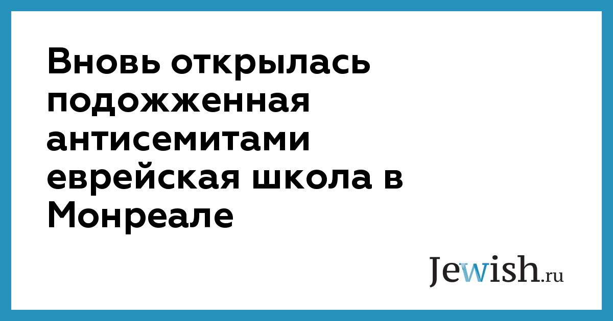 Вновь открылась подожженная антисемитами еврейская школа в Монреале