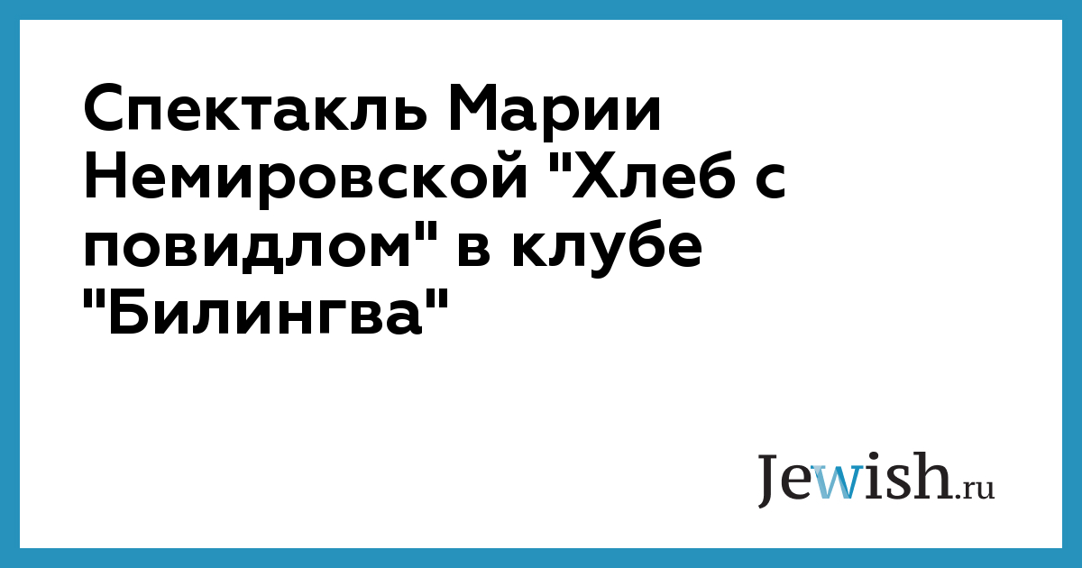 Спектакль Марии Немировской "Хлеб с повидлом" в клубе "Билингва"