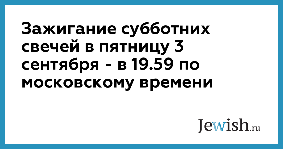 Зажигание субботних свечей в пятницу 3 сентября — в 19.59 по московскому времени
