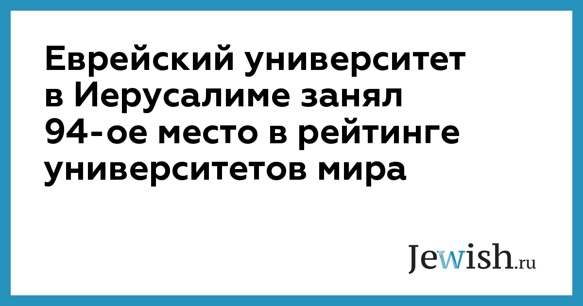 Еврейский университет в Иерусалиме занял 94-ое место в рейтинге университетов мира