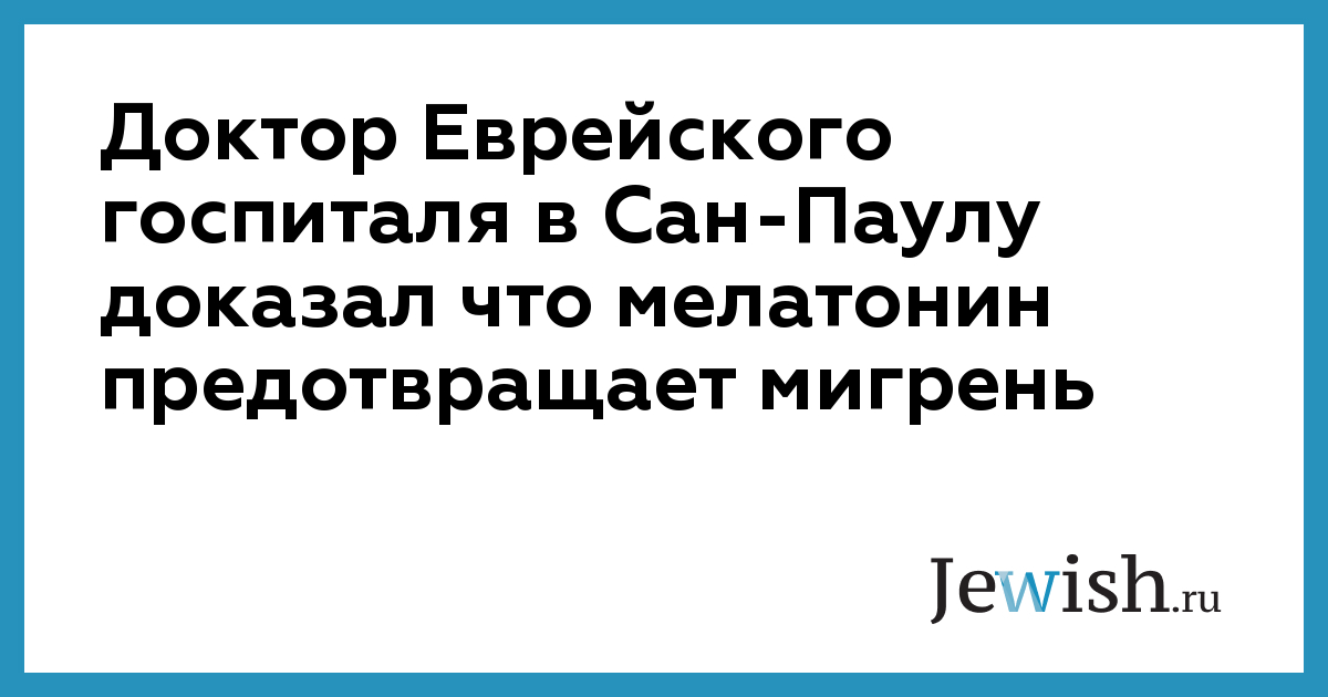Доктор Еврейского госпиталя в Сан-Паулу доказал что мелатонин предотвращает мигрень