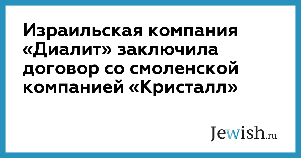 Израильская компания «Диалит» заключила договор со смоленской компанией «Кристалл»