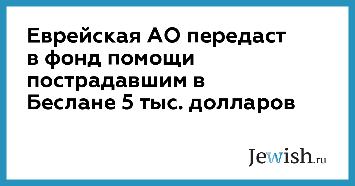 Еврейская АО передаст в фонд помощи пострадавшим в Беслане 5 тыс. долларов