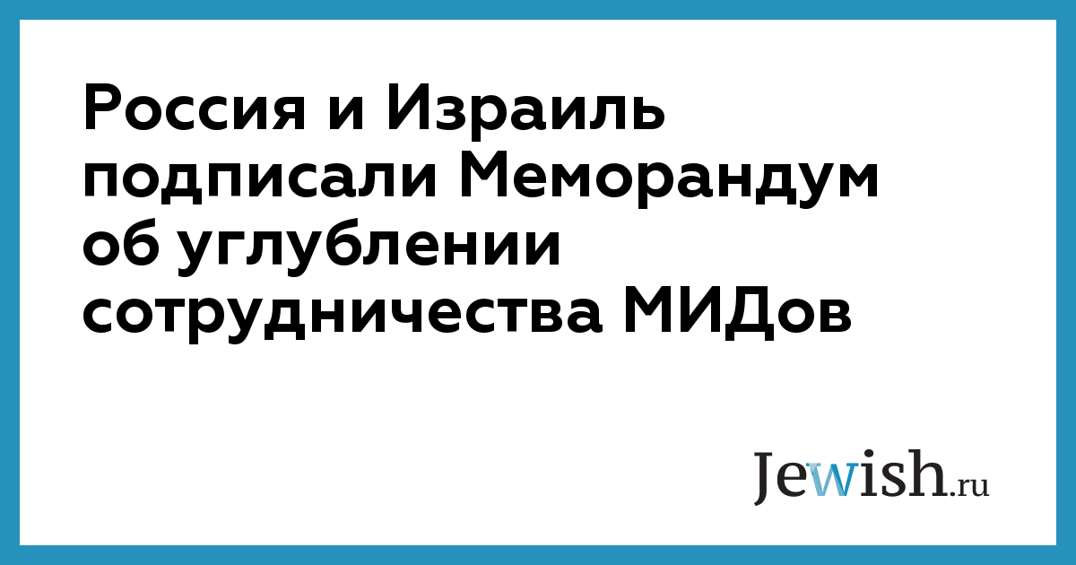 Россия и Израиль подписали Меморандум об углублении сотрудничества МИДов
