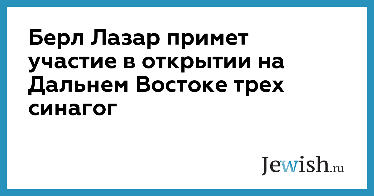 Берл Лазар примет участие в открытии на Дальнем Востоке трех синагог