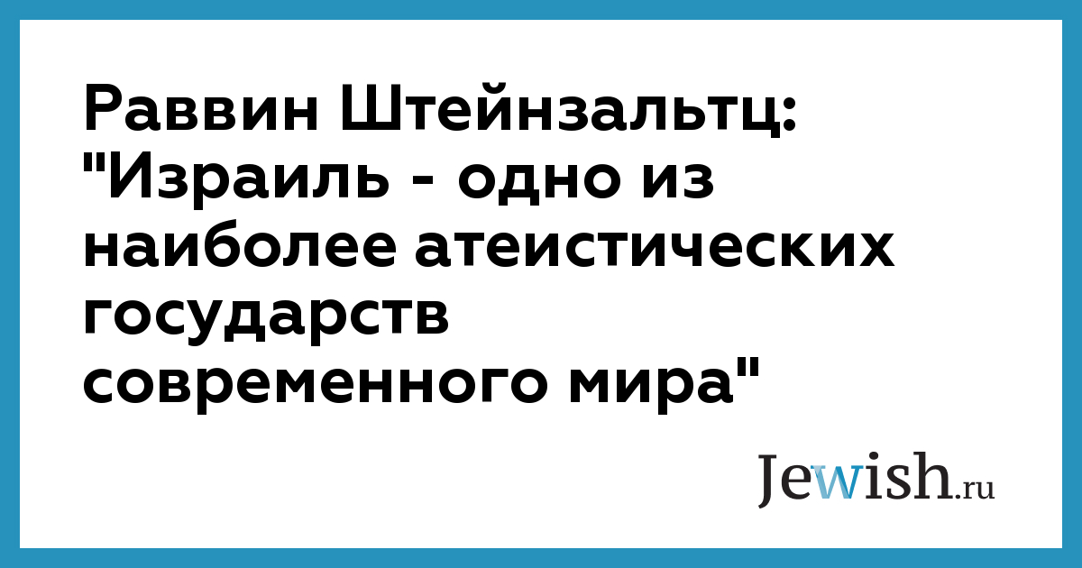 Раввин Штейнзальтц: "Израиль — одно из наиболее атеистических государств современного мира"