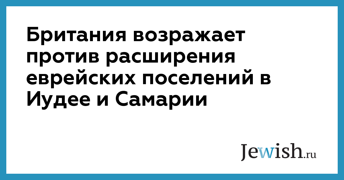 Британия возражает против расширения еврейских поселений в Иудее и Самарии