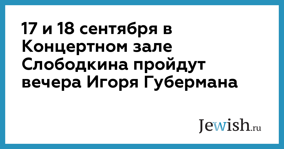 17 и 18 сентября в Концертном зале Слободкина пройдут вечера Игоря Губермана