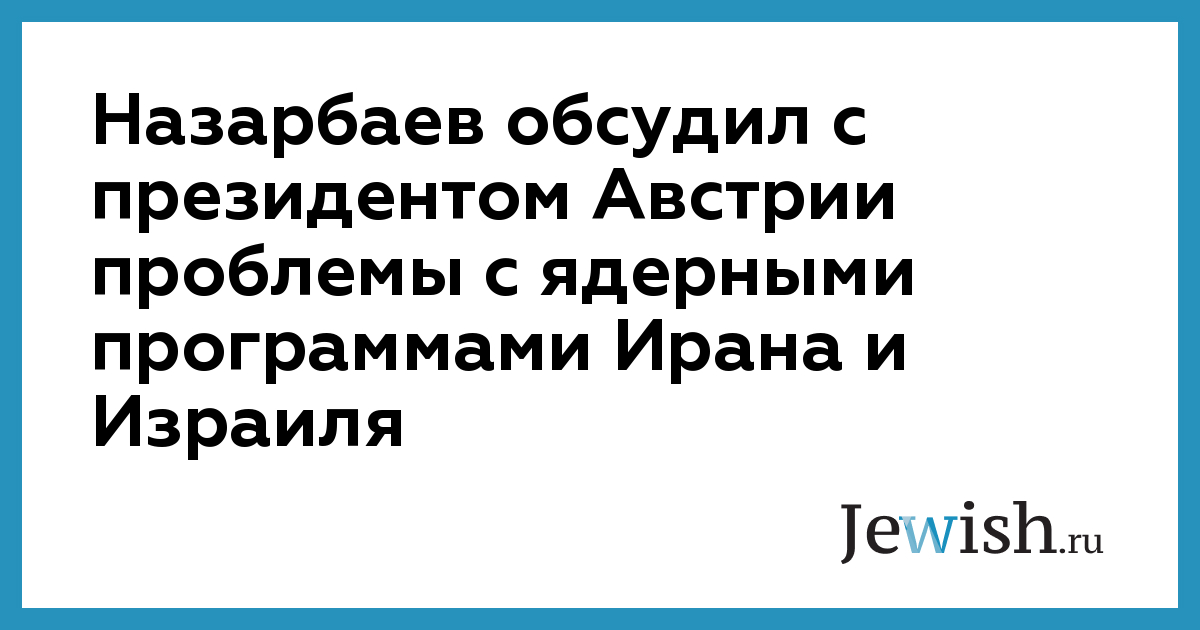 Назарбаев обсудил с президентом Австрии проблемы с ядерными программами Ирана и Израиля