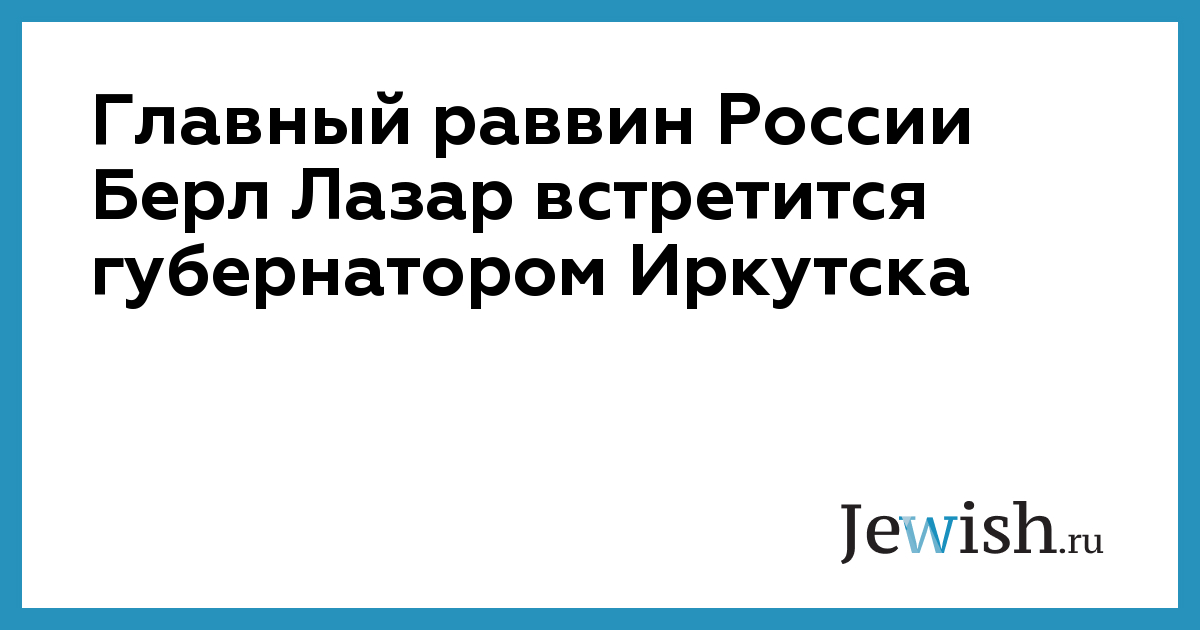 Главный раввин России Берл Лазар встретится губернатором Иркутска