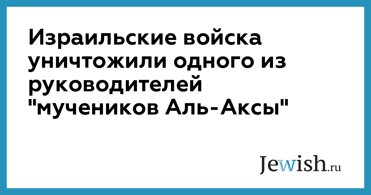 Израильские войска уничтожили одного из руководителей "мучеников Аль-Аксы"