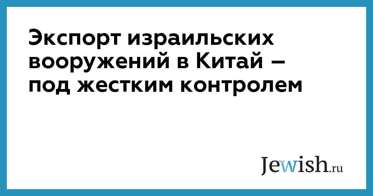 Экспорт израильских вооружений в Китай – под жестким контролем
