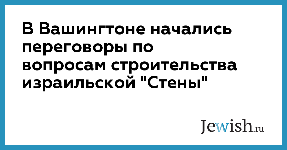 В Вашингтоне начались переговоры по вопросам строительства израильской "Стены"