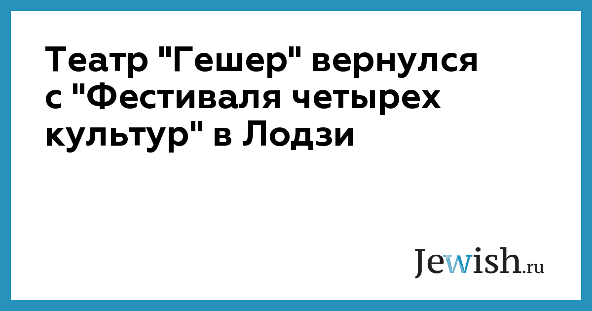 Театр "Гешер" вернулся с "Фестиваля четырех культур" в Лодзи