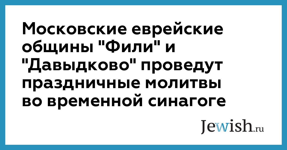 Московские еврейские общины "Фили" и "Давыдково" проведут праздничные молитвы во временной синагоге