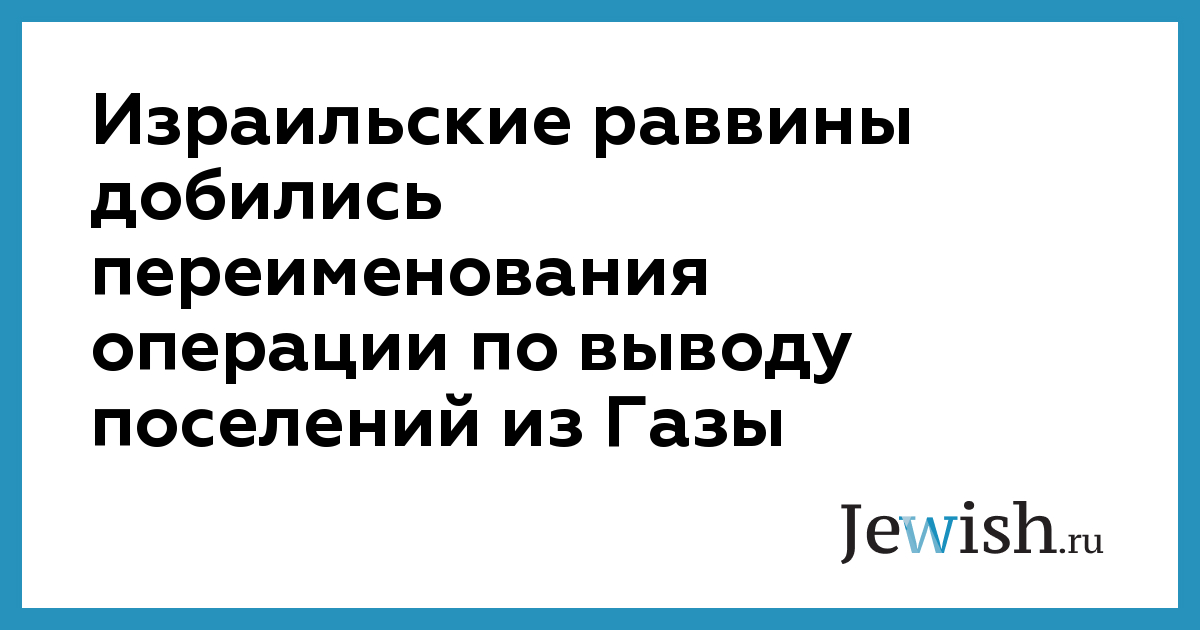 Израильские раввины добились переименования операции по выводу поселений из Газы