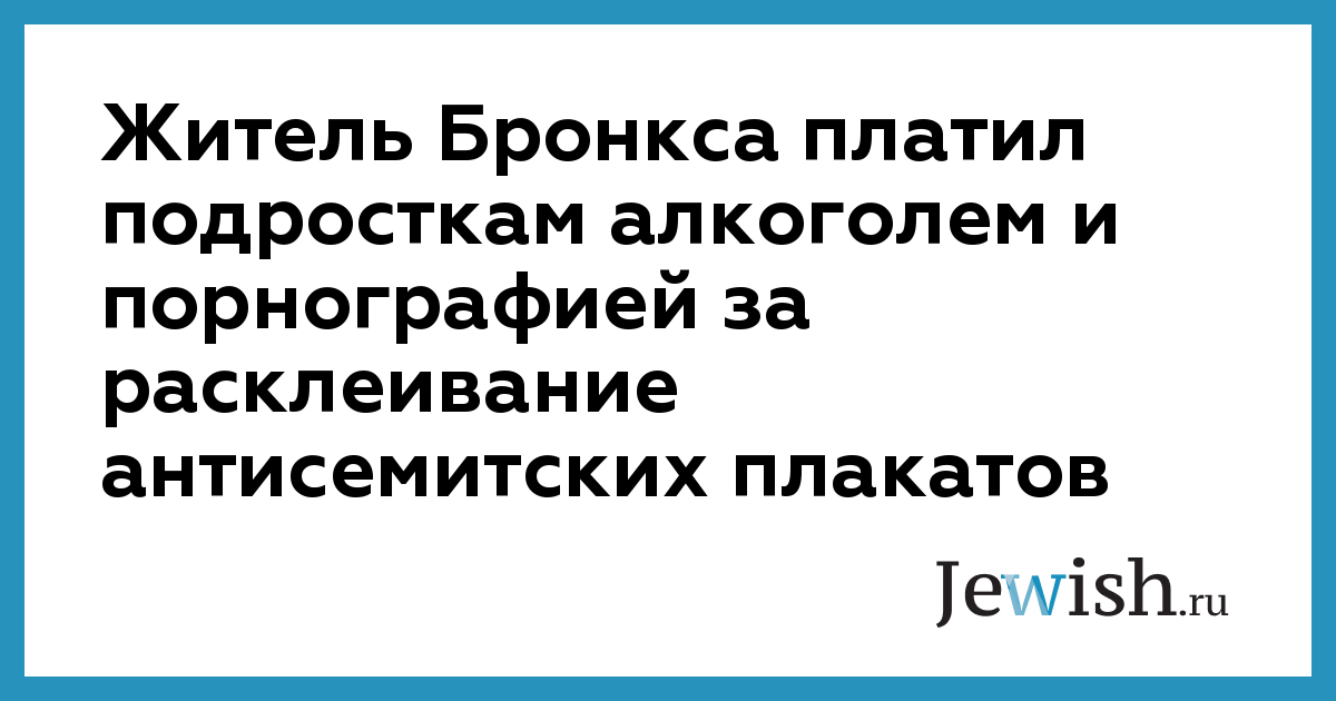Житель Бронкса платил подросткам алкоголем и порнографией за расклеивание антисемитских плакатов