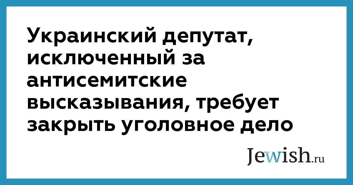 Украинский депутат, исключенный за антисемитские высказывания, требует закрыть уголовное дело