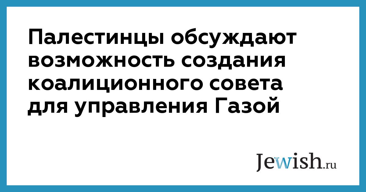 Палестинцы обсуждают возможность создания коалиционного совета для управления Газой