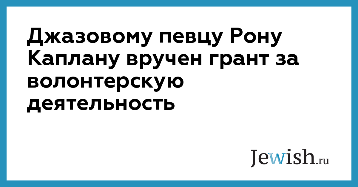 Джазовому певцу Рону Каплану вручен грант за волонтерскую деятельность