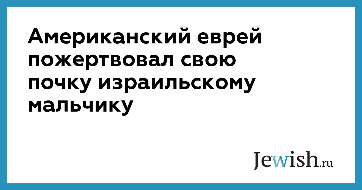 Американский еврей пожертвовал свою почку израильскому мальчику