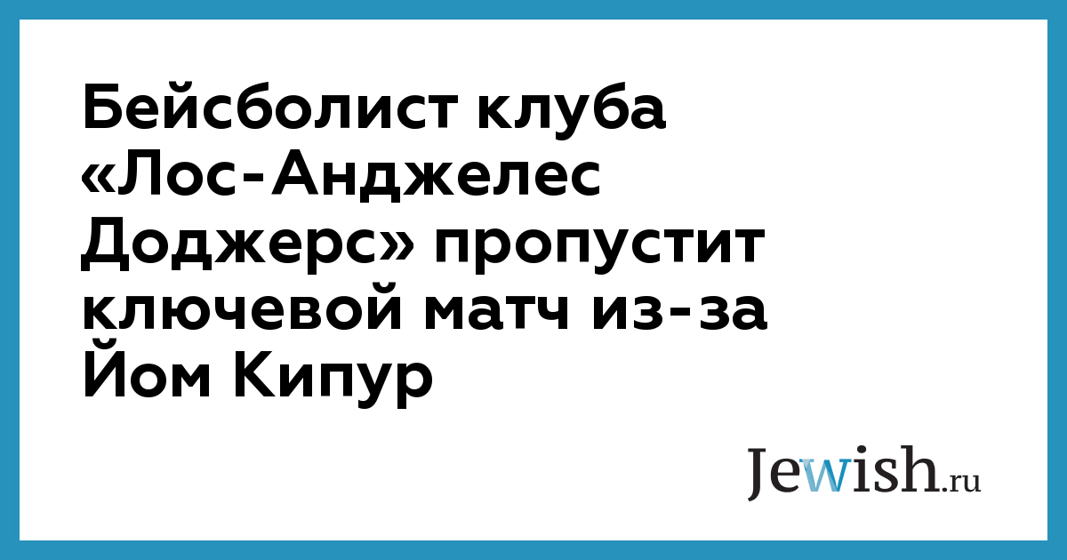 Бейсболист клуба «Лос-Анджелес Доджерс» пропустит ключевой матч из-за Йом Кипур