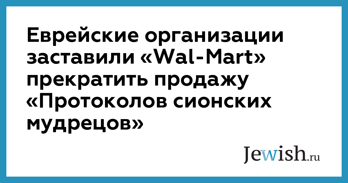 Еврейские организации заставили «Wal-Mart» прекратить продажу «Протоколов сионских мудрецов»