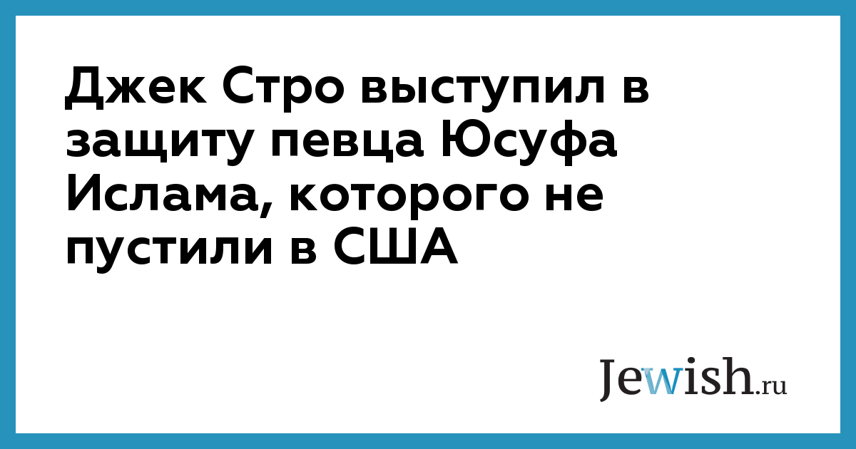 Джек Стро выступил в защиту певца Юсуфа Ислама, которого не пустили в США