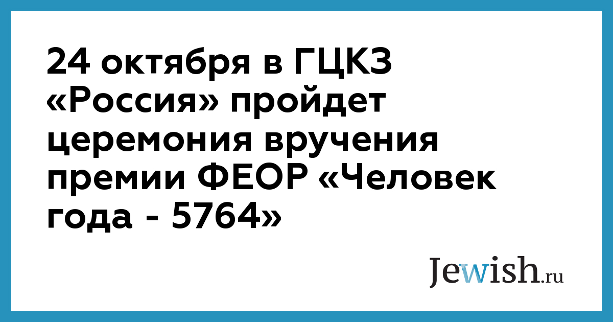 24 октября в ГЦКЗ «Россия» пройдет церемония вручения премии ФЕОР «Человек года — 5764»