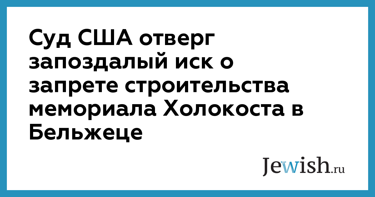 Суд США отверг запоздалый иск о запрете строительства мемориала Холокоста в Бельжеце