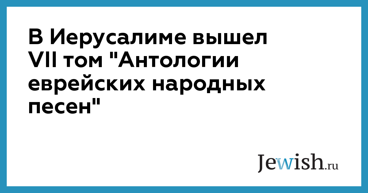 В Иерусалиме вышел VII том "Антологии еврейских народных песен"