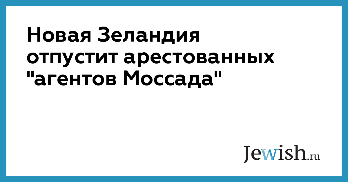 Напомним, что двое израильтян были обвинены в попытке приобрести поддельные новозеландские паспорта и сотрудничестве с израильской разведкой «Моссад». Несмотря на обвинения новозеландской стороны и возникшую напряженность в отношениях между Иерусалимом и Веллингтоном, израильское руководство публично не признало причастность арестованных к деятельности разведслужб.