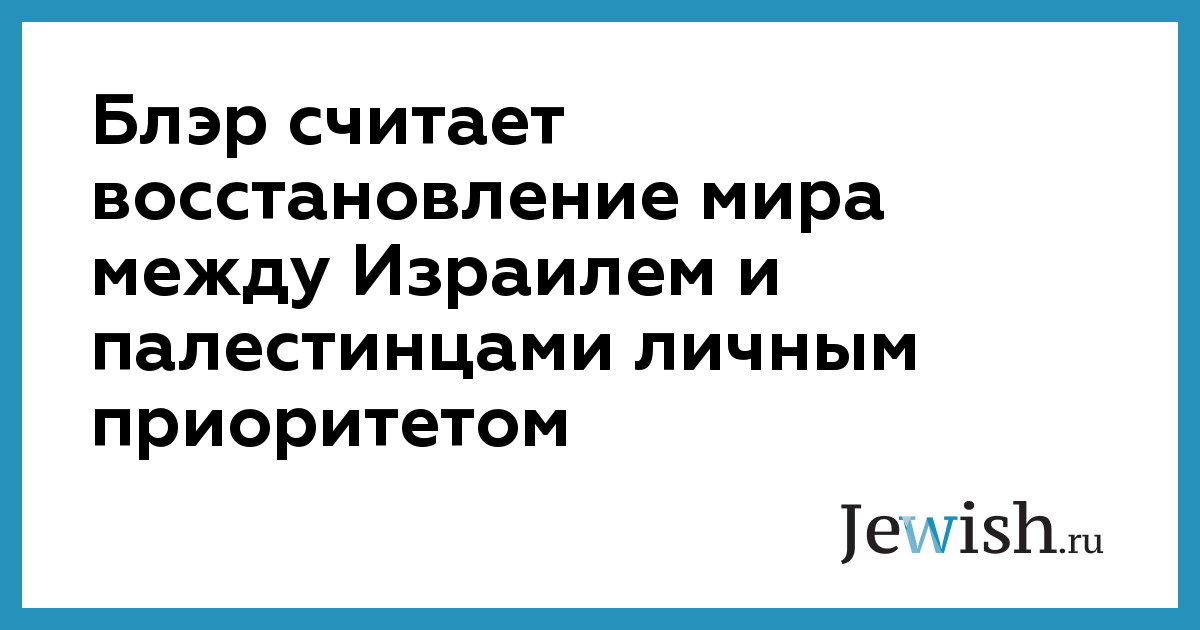 Блэр считает восстановление мира между Израилем и палестинцами личным приоритетом