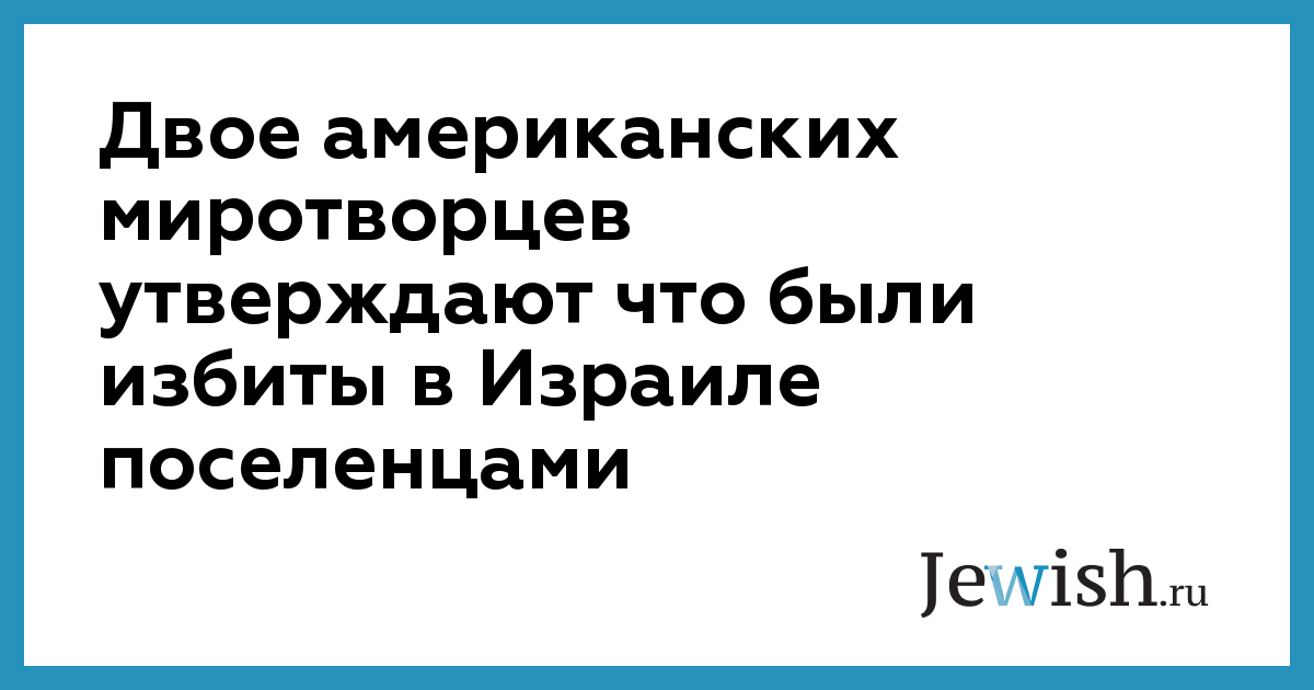 Двое американских миротворцев утверждают что были избиты в Израиле поселенцами