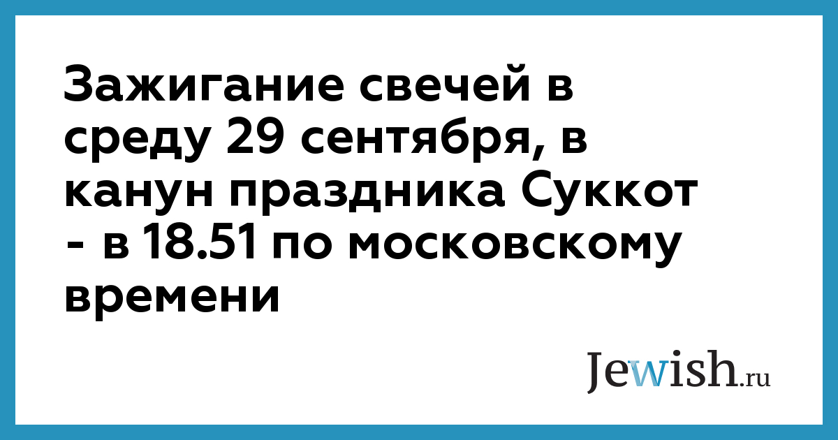Зажигание свечей в среду 29 сентября, в канун праздника Суккот — в 18.51 по московскому времени