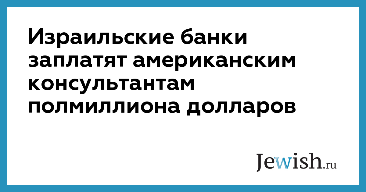 Израильские банки заплатят американским консультантам полмиллиона долларов