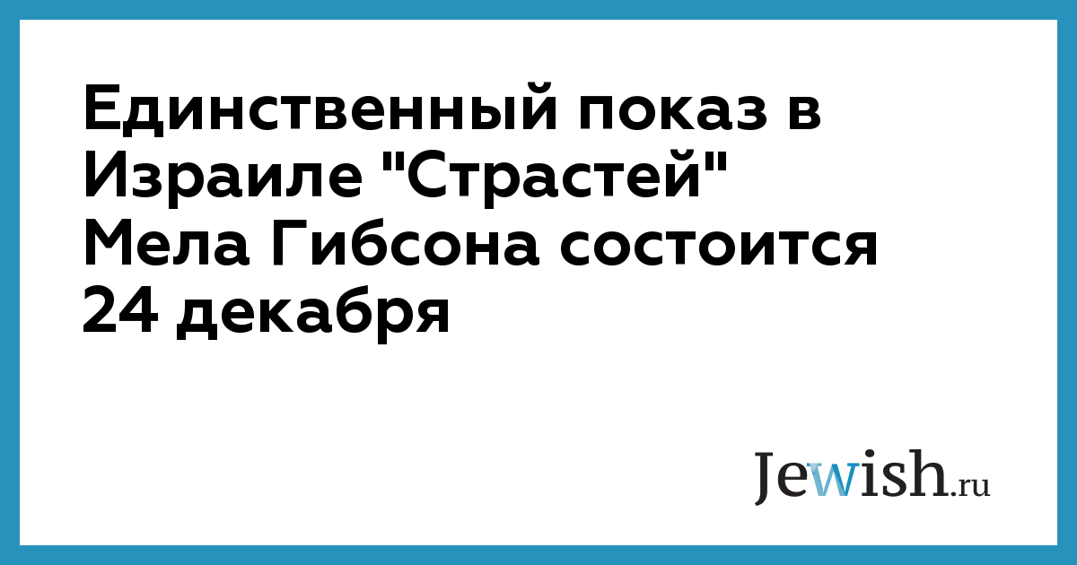 Единственный показ в Израиле "Страстей" Мела Гибсона состоится 24 декабря