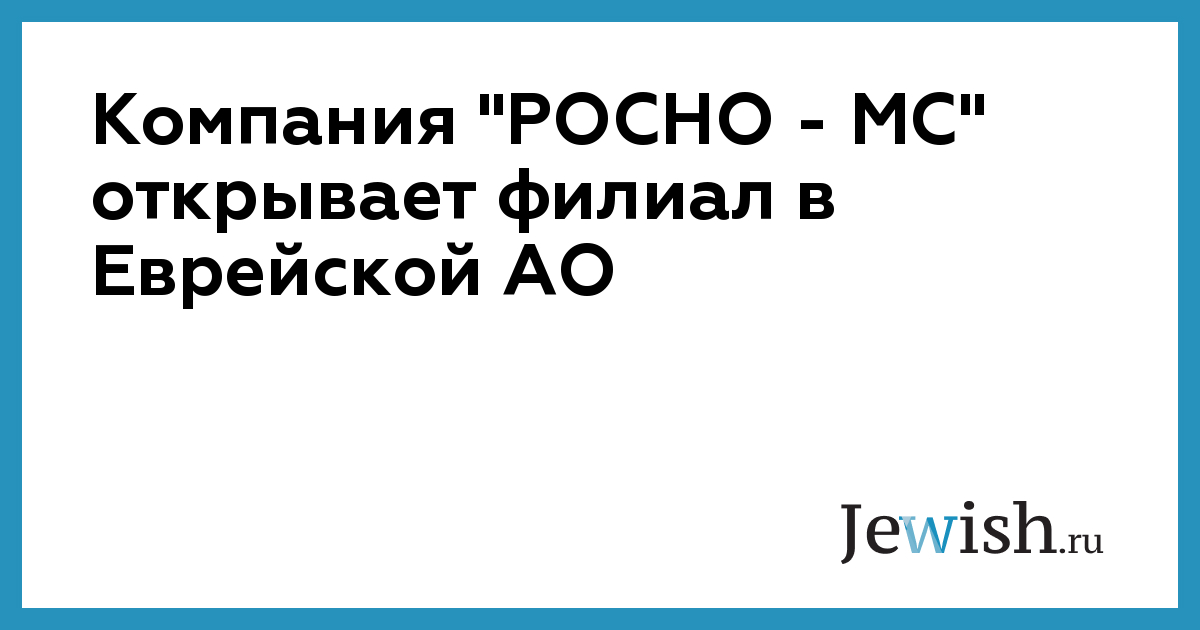 Компания "РОСНО — МС" открывает филиал в Еврейской АО