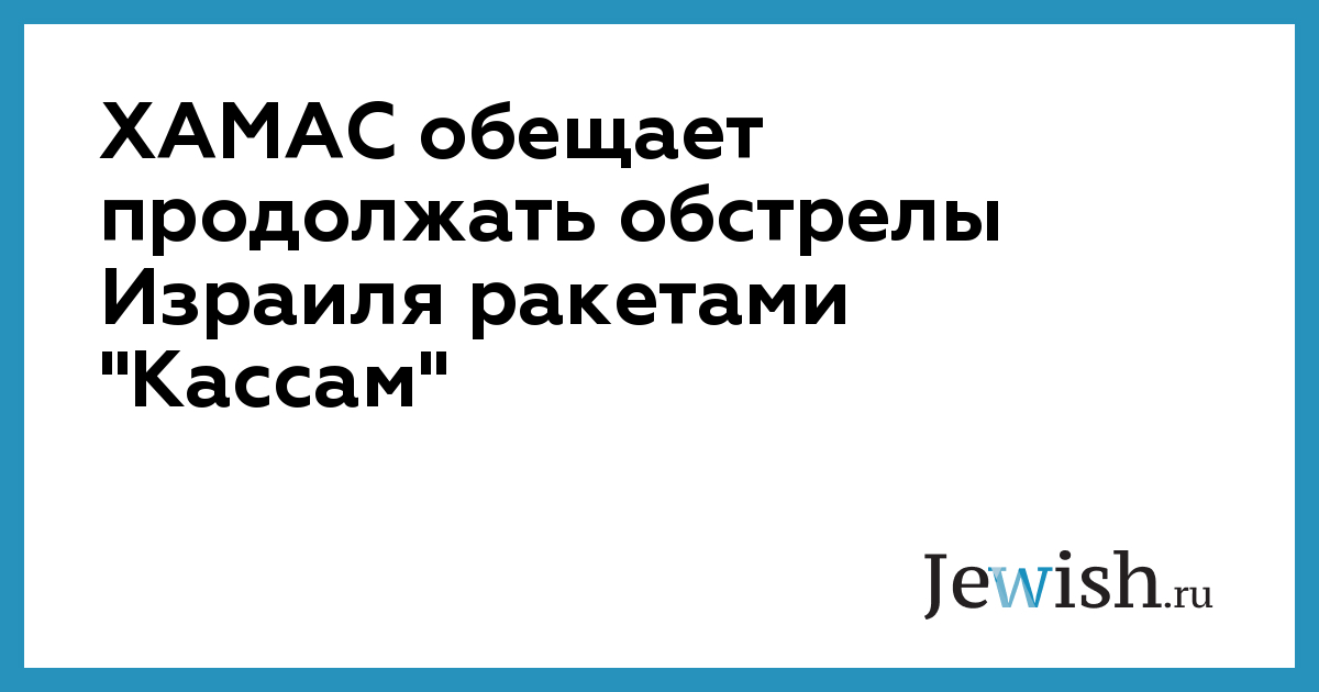 ХАМАС обещает продолжать обстрелы Израиля ракетами "Кассам"