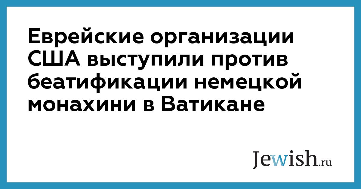 Еврейские организации США выступили против беатификации немецкой монахини в Ватикане