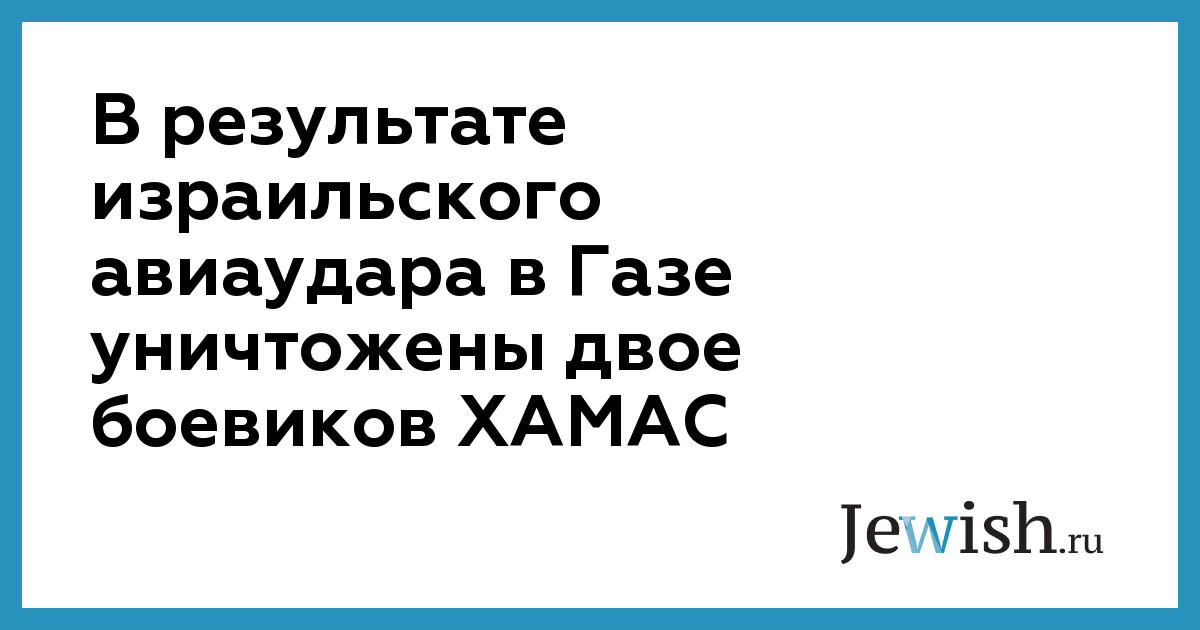 В результате израильского авиаудара в Газе уничтожены двое боевиков ХАМАС